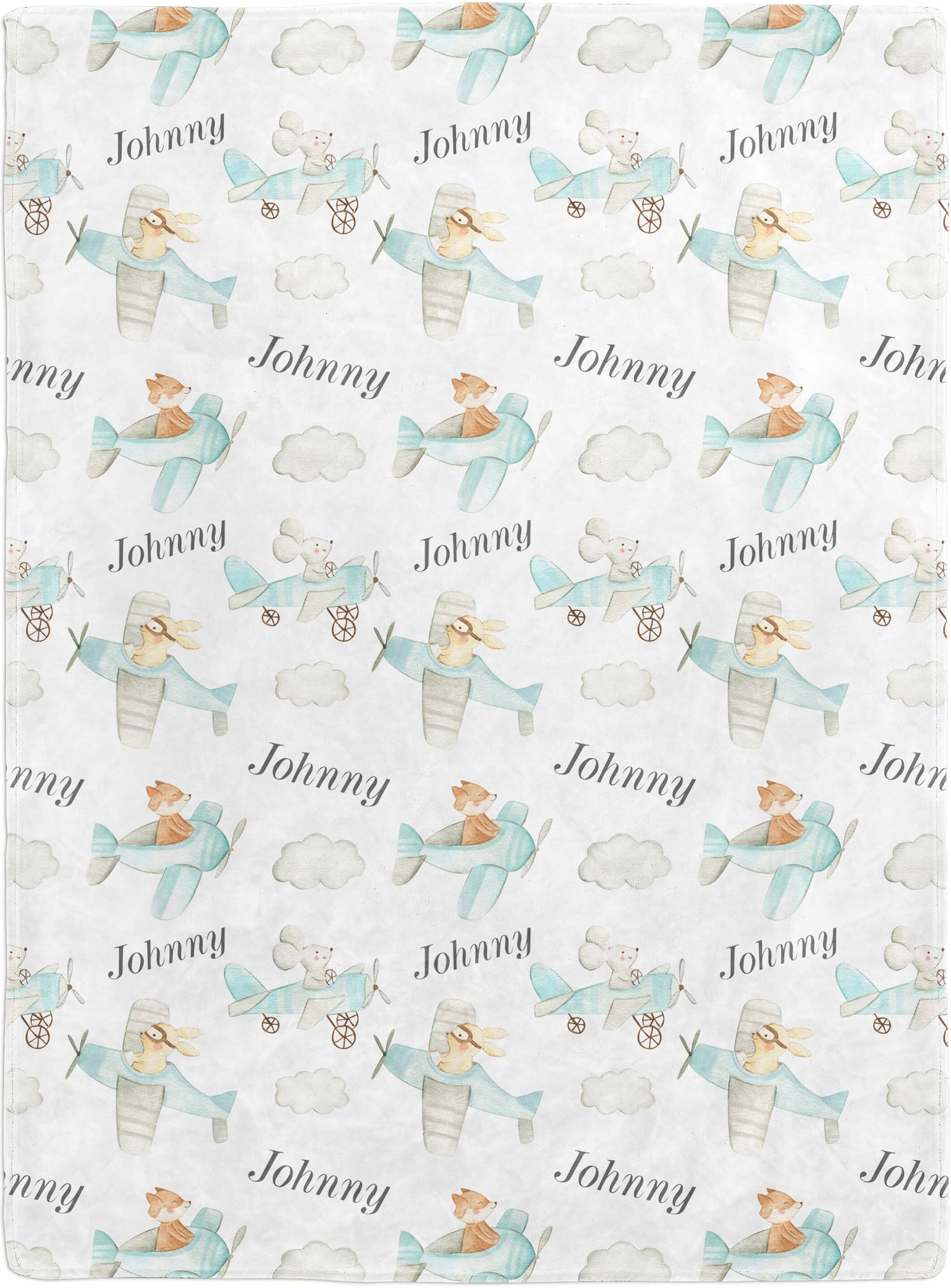 Custom Baby Name Blanket with Planes, Mouse, Rabbit and Fox