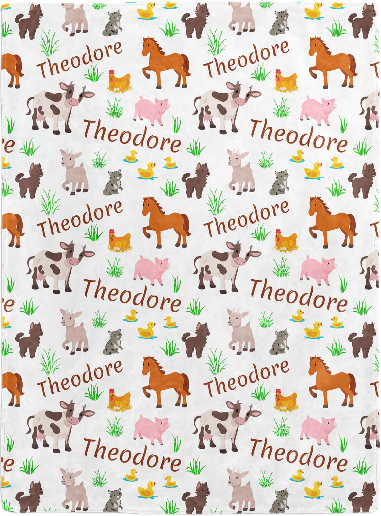- Animal-Themed Blanket for Kids: Surround your infant, newborn, or toddler with love today! Adorable brown, pink, gray and yellow farm animals complete these personalized baby blankets.